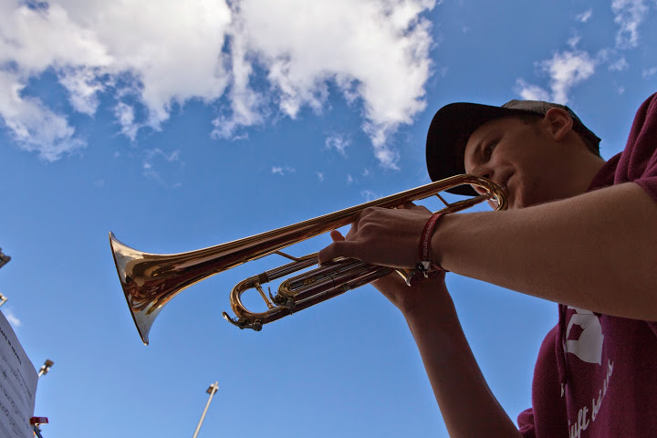 Wir sind eine frisch gegründete Musik-Gruppe von Blechblasinstrumenten, Saxofone, Akkordeon und Gesang. Im Vordergrund stehen gemeinsames Musizieren mit viel Spaß und Engagement beim Ausprobieren von kraftvollen Arrangements von Hymnen linker sozialer Bewegungen und politische, poetische, utopische Lieder. Wir proben regelmäßig unter professioneller Anleitung in einem Probenraum beim Internationaler Bund (IB). Wir suchen musikalisch Interessierte, welche ihr Instrument wieder auspacken wollen und sich in das Bandleben stürzen wollen. Wir würden uns sehr freuen, wenn Ihr einmal bei einer Probe vorbeischaut – unverbindlich (Kontakt-E-Mail: blaeser_kontakt@netzky.de).