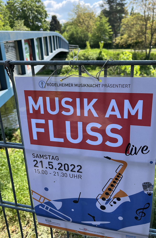 Zur Rödelheimer Musiknacht „Musik am Fluss“ singen wir Lieder unter dem Motto: ‚Das Leben ist ein Fluss‘ und schlagen den Bogen von der Quelle bis zur Mündung und lassen uns dabei von den Wellen des Lebens ein bisschen umherwirbeln, aber niemals unterkriegen!
